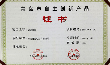 科海牌节能路灯被评为“青岛市创新技术产品”