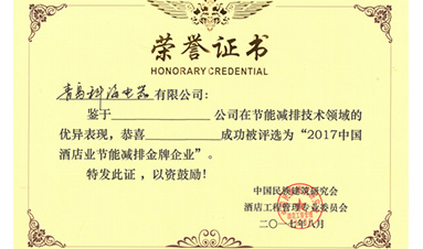 被中国民族建筑研究所酒店工程管理专业委员会评为“2017中国酒店业节能减排金牌企业”