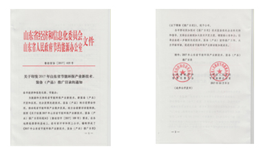 被山东省经济和信息化委员会编入《2017年山东省节能环保产业新技术装备(产品)推广目录》