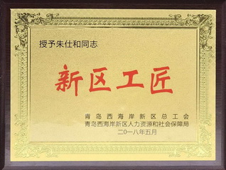总经理朱仕和被青岛西海岸新区总工会、青岛西海岸新区人力资源和社会保障局授予西海岸“新区工匠”荣誉称号