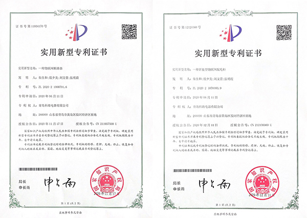 科海物联取得物联网配电柜、物联网断路器实用新型专利证书